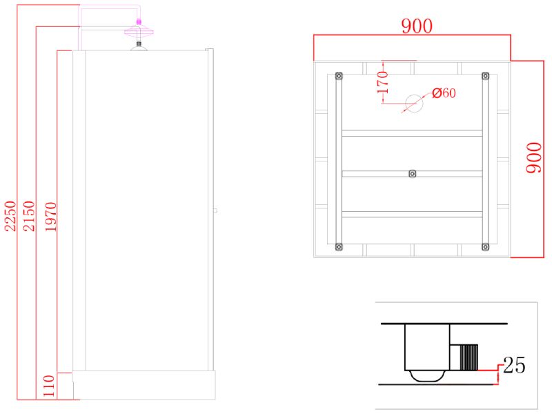 dušikabiin Harma Vision 90x90x225cm, madal alus