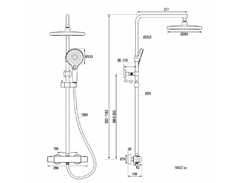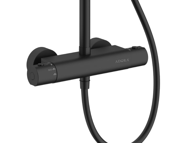ADORA Infigo L Black on elegantse Taani disainiga must dušikomplekt, mis sobib suurepäraselt igasse vannitoa interjööri. Komplekt sisaldab 25 cm läbimõõduga peadušši ja 3-pihustusrežiimiga käsidušši, mis on kinnitatud reguleeritava seinakonsoliga dušitorule.