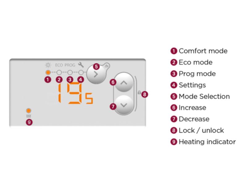Elektrooniline termostaat ning nädalaprogrammeerimise võimalus – võimaldab määrata erinevaid temperatuure eri päevadel ja tundidel.