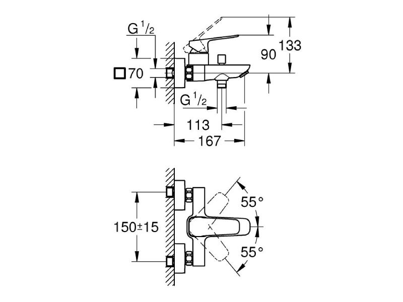 Paigaldusmõõdud: tsentrite vahe 150 ± 15 mm.