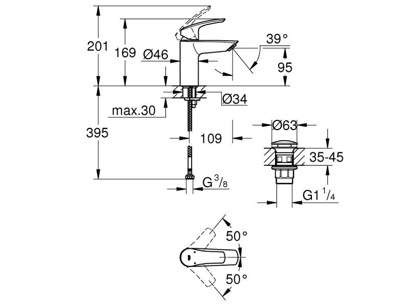 GROHE Eurosmart 23922003 on ühe hoovaga S-Size valamusegisti kroomviimistluses, komplektis push-open (klik-klak) äravool 1 1/4″ ja veesäästlik maks. vooluhulk 5 l/min (3 bar). 28 mm GROHE SilkMove keraamiline kassett annab sujuva ja täpse temperatuuri ning veehulga reguleerimise. Lisaks on segistil reguleeritav vooluhulga piiraja ja temperatuuripiirik, et saaksid kasutuse oma harjumuste järgi paika sättida ning vältida liiga kuuma vett.