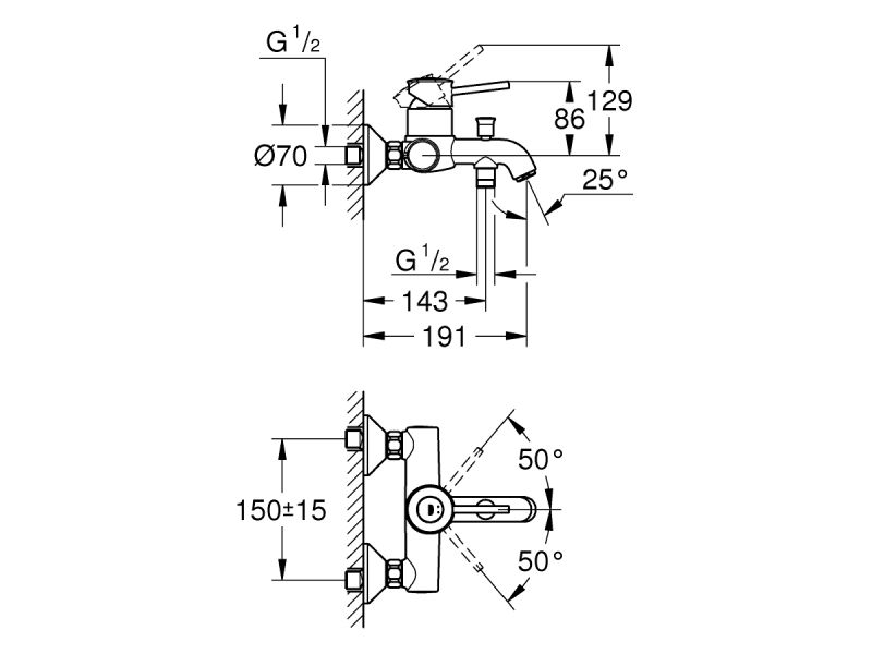 GROHE Start Classic 23787000 on seinale paigaldatav vanni/duši ühehoovaline segisti, mis sobib klassikalise vannilahenduse jaoks: vanni täitmine segisti väljavoolust ja käsiduši kasutamine altpoolt 1/2″ dušiühendusest. Segistil on automaatne ümberlüliti vann/dušš, sujuv 46 mm keraamiline kassett ja reguleeritav vooluhulga piiraja.