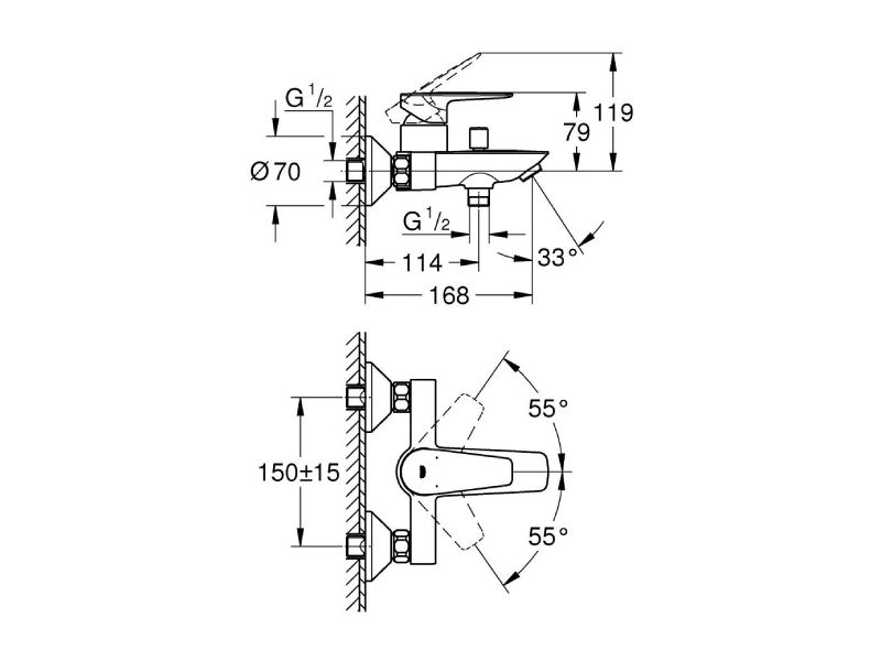 GROHE Start Edge 23348001 on seinale paigaldatav vanni/duši ühehoovaline segisti, kus on kõik “klassikalise” vannisegisti vajalikud funktsioonid ühes korpuses: sujuv keraamiline kassett, automaatne ümberlüliti vann/dušš, reguleeritav voolupiiraja ning tagasilöögiklapp duši väljavoolus, et vältida tagasivoolu. Kroomviimistlus on kulumiskindel ning komplektis on S-liitmikud ja QuickSpanner, mis teeb paigalduse mugavamaks.