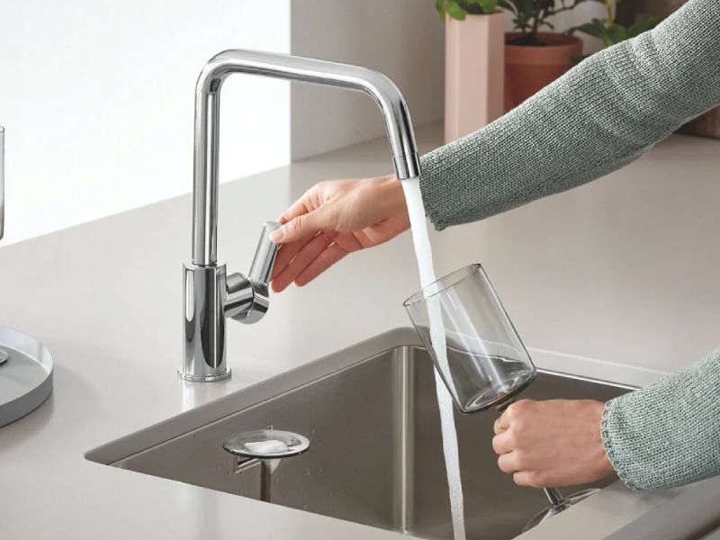 GROHE Start 30470000 on kõrge U-kujulise torutilaga köögisegisti, mis sobib siis, kui tahad valamu juures rohkem ruumi (potid, kannud, küpsetusplaadid) ja samas kontrollitud pöörderaadiust, et kraan ei käiks vastu seina või pritsmekaitset. Tila pöörab 150°, paigaldus on ühe avaga ning QuickMount kinnitus teeb montaaži kiireks ja lihtsaks.