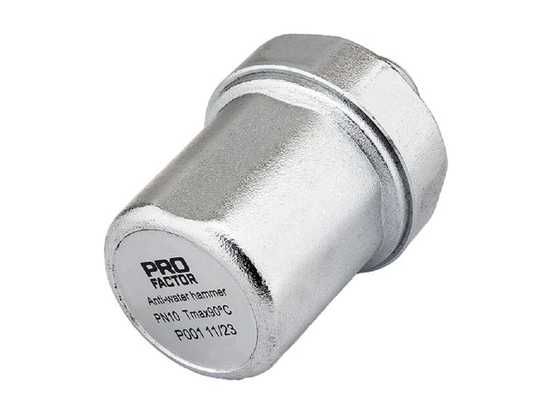 PROFACTOR PF BS 588 on hüdrolöögi kompensaator, mis on mõeldud veevarustussüsteemides tekkivate rõhulöökide summutamiseks. Seade aitab vähendada torustikus tekkivaid ülerõhke olukordades, kus vool suletakse järsult, näiteks segisti, kraani või ventiili kiirel sulgemisel. Lisaks aitab kompensaator vähendada hüdrolöögist põhjustatud müra ja vibratsiooni, parandades süsteemi töökindlust ja kaitstes torustikku ning armatuuri liigsete löökkoormuste eest. Konstruktsioonis kasutatakse terasvedru ja topelt O-rõngaga plastketast, mis neelavad osa rõhuimpulsist.