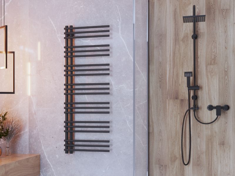 Aquatic on modernne musta viimistlusega käterätikuivati, mis ühendab stiilse välimuse ja praktilise funktsionaalsuse. Redelilaadne disain võimaldab rätikuid mugavalt kuivatada, lisades samas ruumi mõnusat soojust.