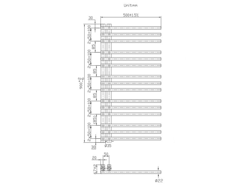 käterätikuivati kütteveele Aquatic 500x900mm valge