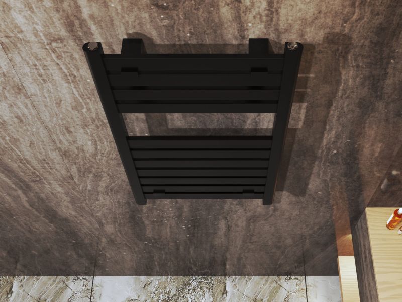 Arctic-seeria 50 × 80 cm on stiilne käterätikuivati, mis sobib hästi väiksemasse vannituppa. Must viimistlus ja minimalistlik redelilaadne disain annavad ruumile modernse ilme, pakkudes samal ajal tõhusat soojust ja praktilist kohta rätikute kuivatamiseks.
