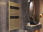 Arctic-seeria 60 × 120 cm on stiilne käterätikuivati, mis sobib hästi väiksemasse vannituppa. Kuldne viimistlus ja minimalistlik redelilaadne disain annavad ruumile modernse ilme, pakkudes samal ajal tõhusat soojust ja praktilist kohta rätikute kuivatamiseks.