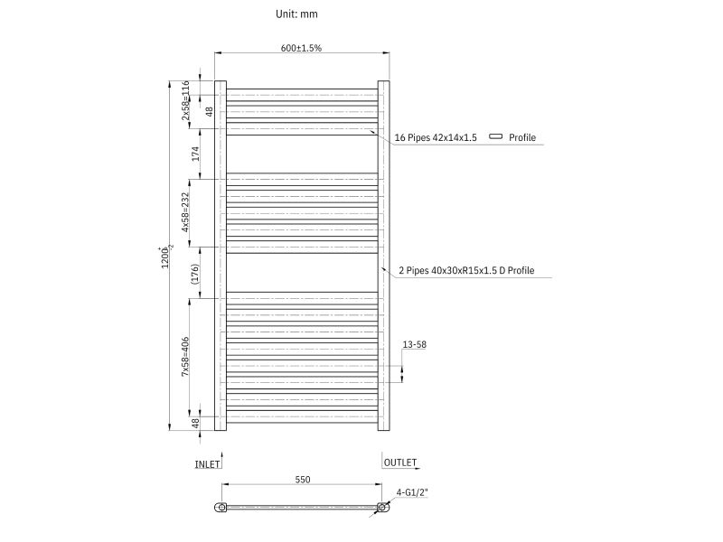 Ühendusvahe: 550 mm.
