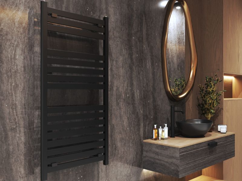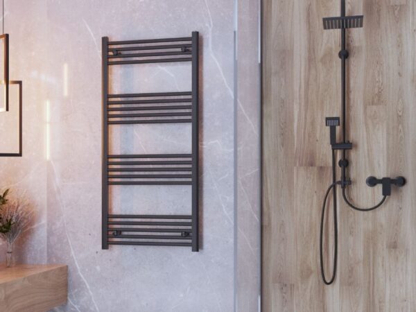 Arctic-seeria 60 × 120 cm on stiilne käterätikuivati, mis sobib hästi väiksemasse vannituppa. Must viimistlus ja minimalistlik redelilaadne disain annavad ruumile modernse ilme, pakkudes samal ajal tõhusat soojust ja praktilist kohta rätikute kuivatamiseks.
