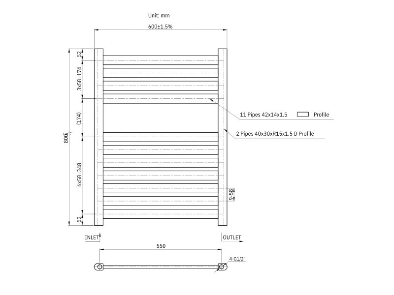 Mõõdud: kõrgus 800 mm, laius 600 mm.