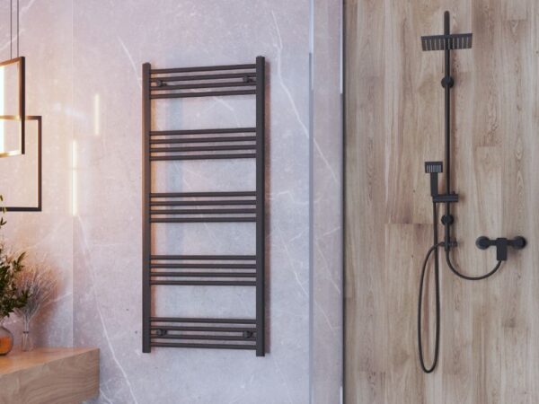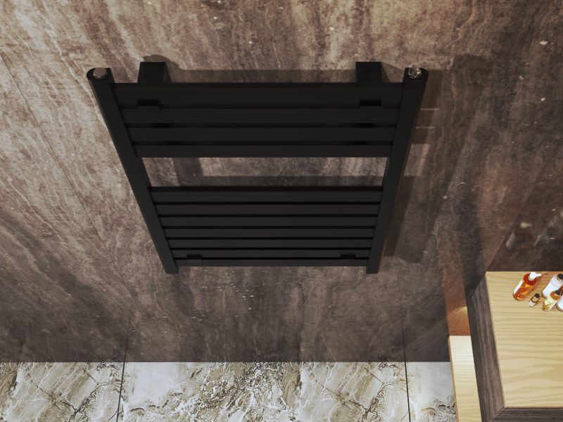 Arctic-seeria 60 × 80 cm on stiilne käterätikuivati, mis sobib hästi väiksemasse vannituppa. Must viimistlus ja minimalistlik redelilaadne disain annavad ruumile modernse ilme, pakkudes samal ajal tõhusat soojust ja praktilist kohta rätikute kuivatamiseks.