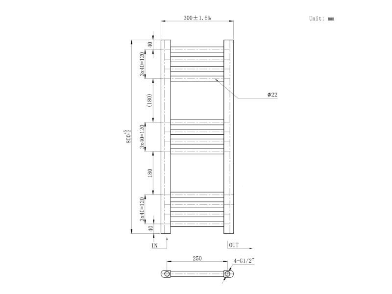 käterätikuivati kütteveele Basic 300x800mm valge