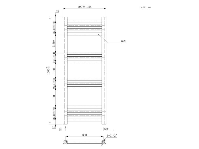 käterätikuivati kütteveele Basic 400x1000mm valge