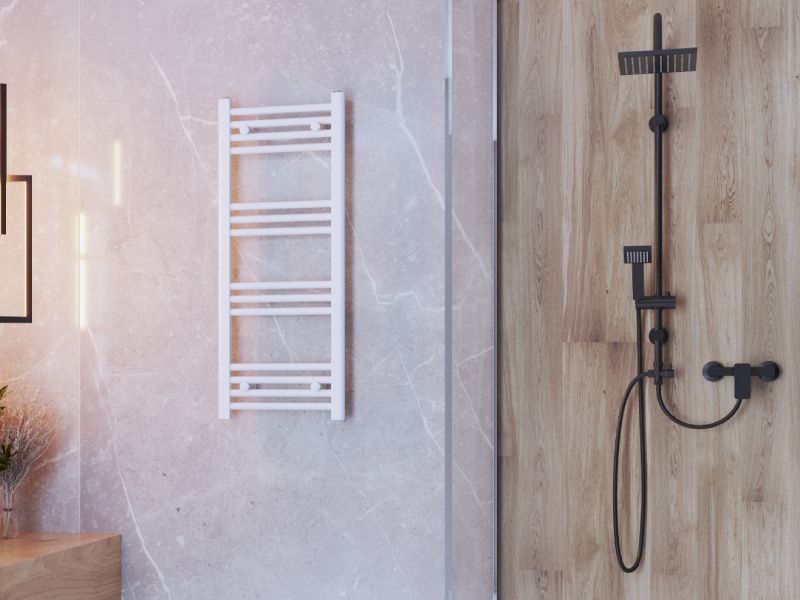 BASIC-seeria 40 × 100 cm on kompaktne ja stiilne käterätikuivati, mis sobib hästi väiksemasse vannituppa. Valge viimistlus ja minimalistlik redelilaadne disain annavad ruumile modernse ilme, pakkudes samal ajal tõhusat soojust ja praktilist kohta rätikute kuivatamiseks.