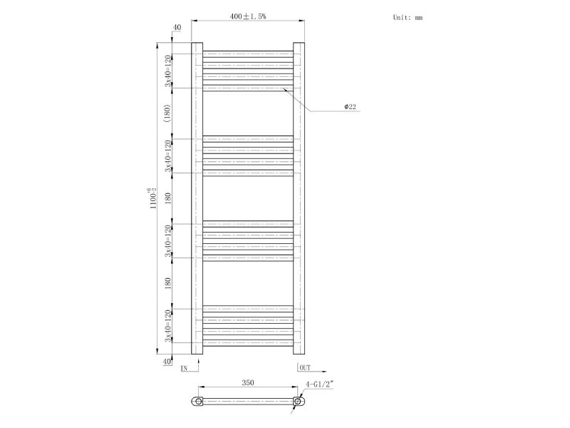 BASIC-seeria 40 × 110 cm on kompaktne ja stiilne käterätikuivati, mis sobib hästi väiksemasse vannituppa. Must viimistlus ja minimalistlik redelilaadne disain annavad ruumile modernse ilme, pakkudes samal ajal tõhusat soojust ja praktilist kohta rätikute kuivatamiseks.