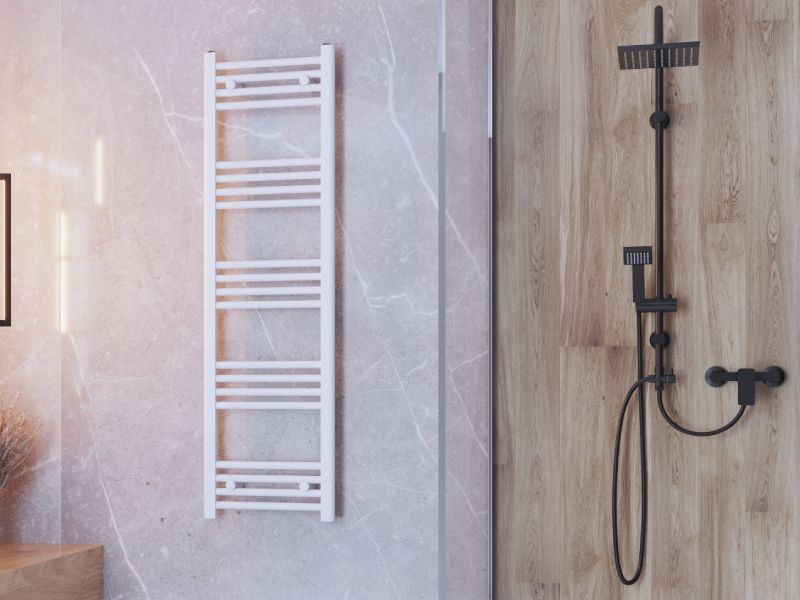 BASIC-seeria 40 × 140 cm on kompaktne ja stiilne käterätikuivati, mis sobib hästi väiksemasse vannituppa. Valge viimistlus ja minimalistlik redelilaadne disain annavad ruumile modernse ilme, pakkudes samal ajal tõhusat soojust ja praktilist kohta rätikute kuivatamiseks.