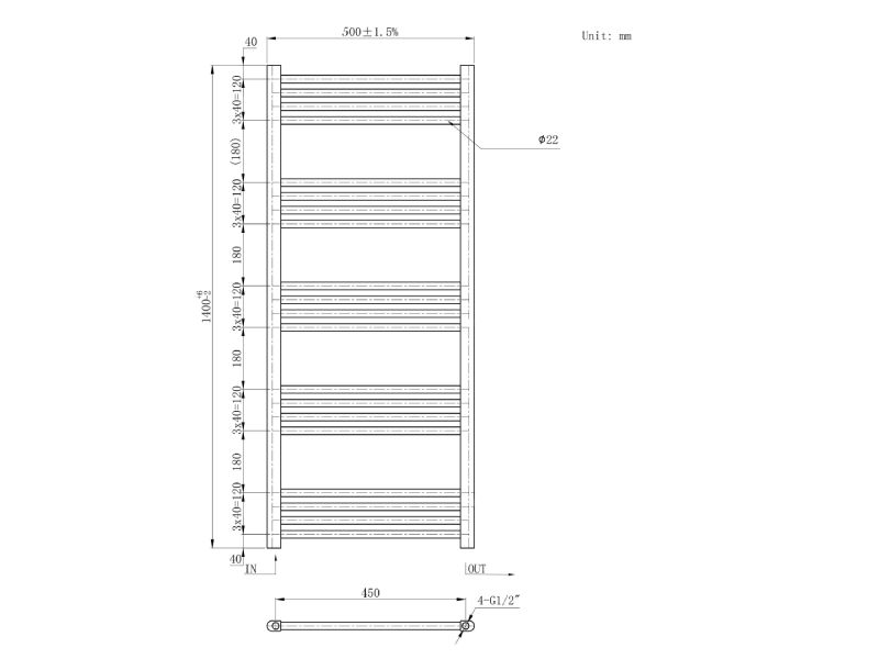 käterätikuivati kütteveele Basic 500x1400mm must
