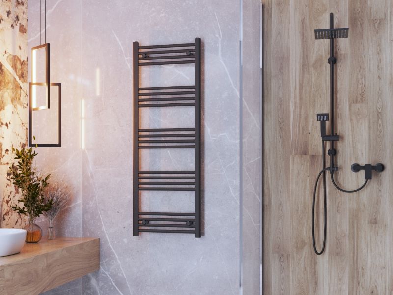 BASIC-seeria 50 × 140 cm on kompaktne ja stiilne käterätikuivati, mis sobib hästi väiksemasse vannituppa. Must viimistlus ja minimalistlik redelilaadne disain annavad ruumile modernse ilme, pakkudes samal ajal tõhusat soojust ja praktilist kohta rätikute kuivatamiseks.