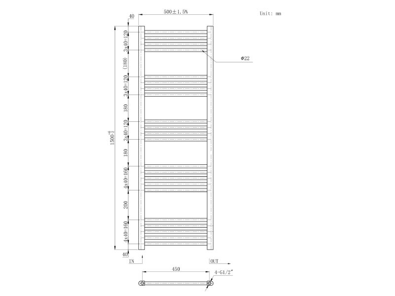 BASIC-seeria 50 × 150 cm on kompaktne ja stiilne käterätikuivati, mis sobib hästi väiksemasse vannituppa. Must viimistlus ja minimalistlik redelilaadne disain annavad ruumile modernse ilme, pakkudes samal ajal tõhusat soojust ja praktilist kohta rätikute kuivatamiseks.