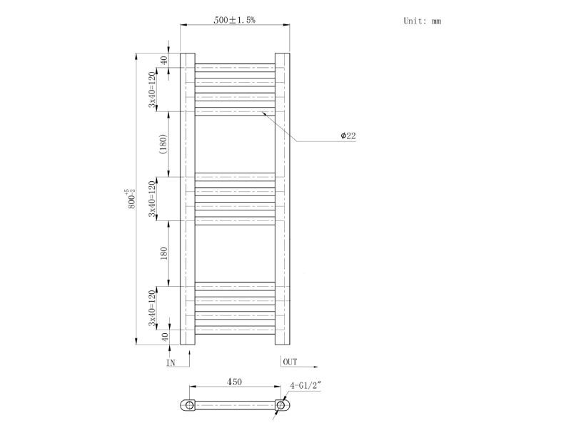 Mõõdud: kõrgus 800 mm, laius 500 mm.