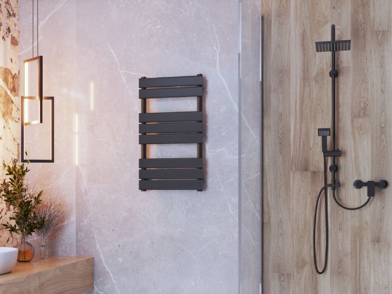 Classic-seeria 45 × 80 cm on kompaktne ja stiilne käterätikuivati, mis sobib hästi väiksemasse vannituppa. Must viimistlus ja minimalistlik redelilaadne disain annavad ruumile modernse ilme, pakkudes samal ajal tõhusat soojust ja praktilist kohta rätikute kuivatamiseks.