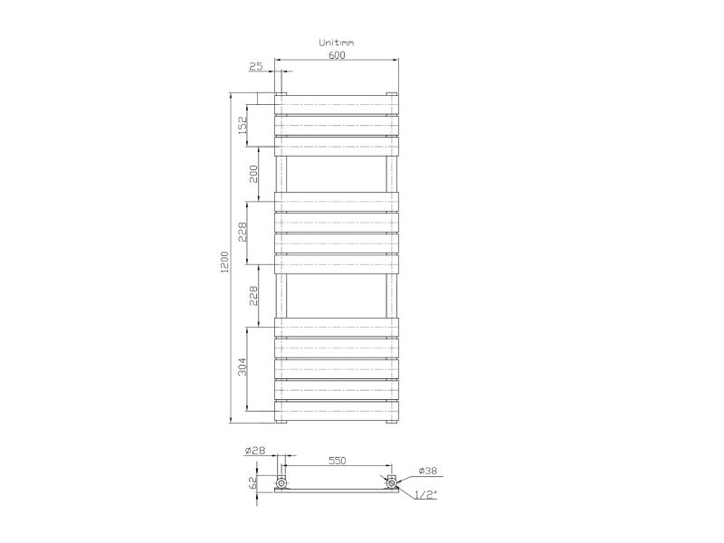 käterätikuivati kütteveele Classic 600x1200mm must
