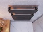 Classic-seeria 60 × 120 cm on kompaktne ja stiilne käterätikuivati, mis sobib hästi väiksemasse vannituppa. Must viimistlus ja minimalistlik redelilaadne disain annavad ruumile modernse ilme, pakkudes samal ajal tõhusat soojust ja praktilist kohta rätikute kuivatamiseks.