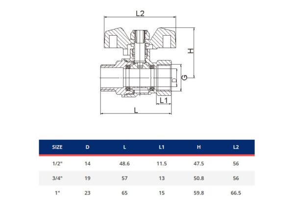 kuulkraan gaasile pika käepidemega sise- väliskeermega 1/2″
