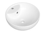 Fado on pealtpaigaldatav ümmargune valamu valges viimistluses mõõtudega 420 × 420 mm, sobib paigaldamiseks vannitoa töötasapinnale/kapi peale.