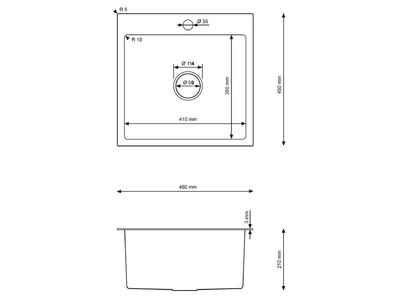 Töötasapinda süvistatav valamu roostevabast terasest.