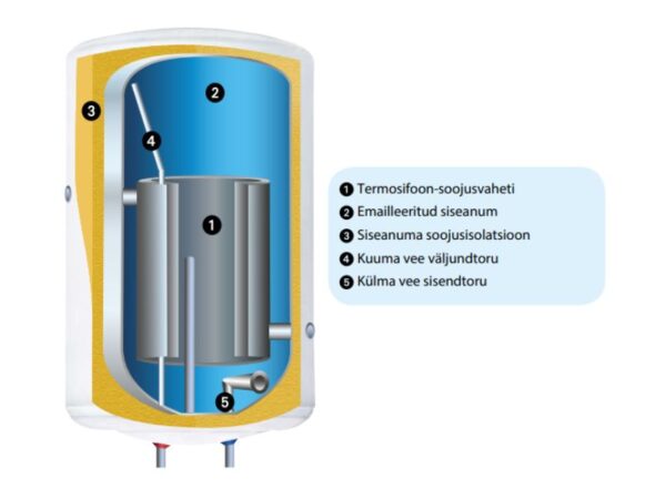 Võimas sisemine spiraalküttetorustik (kaudkütte võimalus).