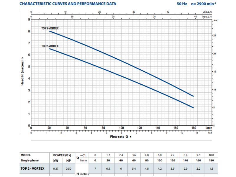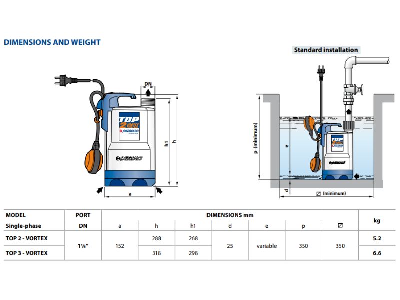 Pedrollo TOP2 VORTEX on sukeldatav vortex-tüüpi tühjenduspump, mis on mõeldud mustale veele ja reoveele, kus võib olla hõljuvaid osakesi. Pump sobib kaevude ja kogumiskaevude tühjendamiseks, paakide tühjendamiseks ning koduse reovee ärajuhtimiseks. Vortex tööratas laseb läbi kuni 25 mm osakesi ja mootor on täielikult jahutatud, mis teeb pumba töökindlaks ka pikemal kasutusel.